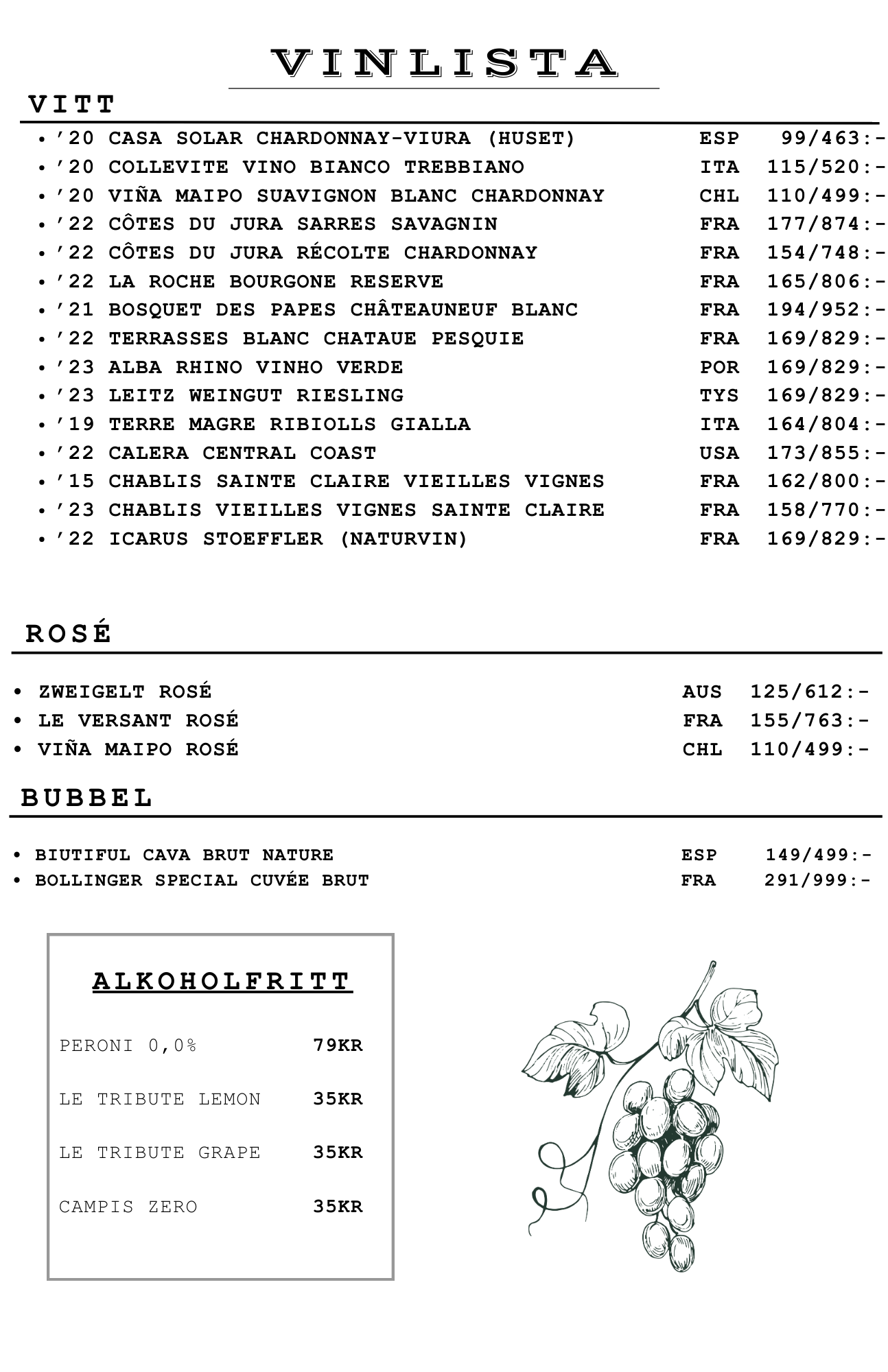 Passar till:Ostron, sushi, grillad fisk och skaldjur.